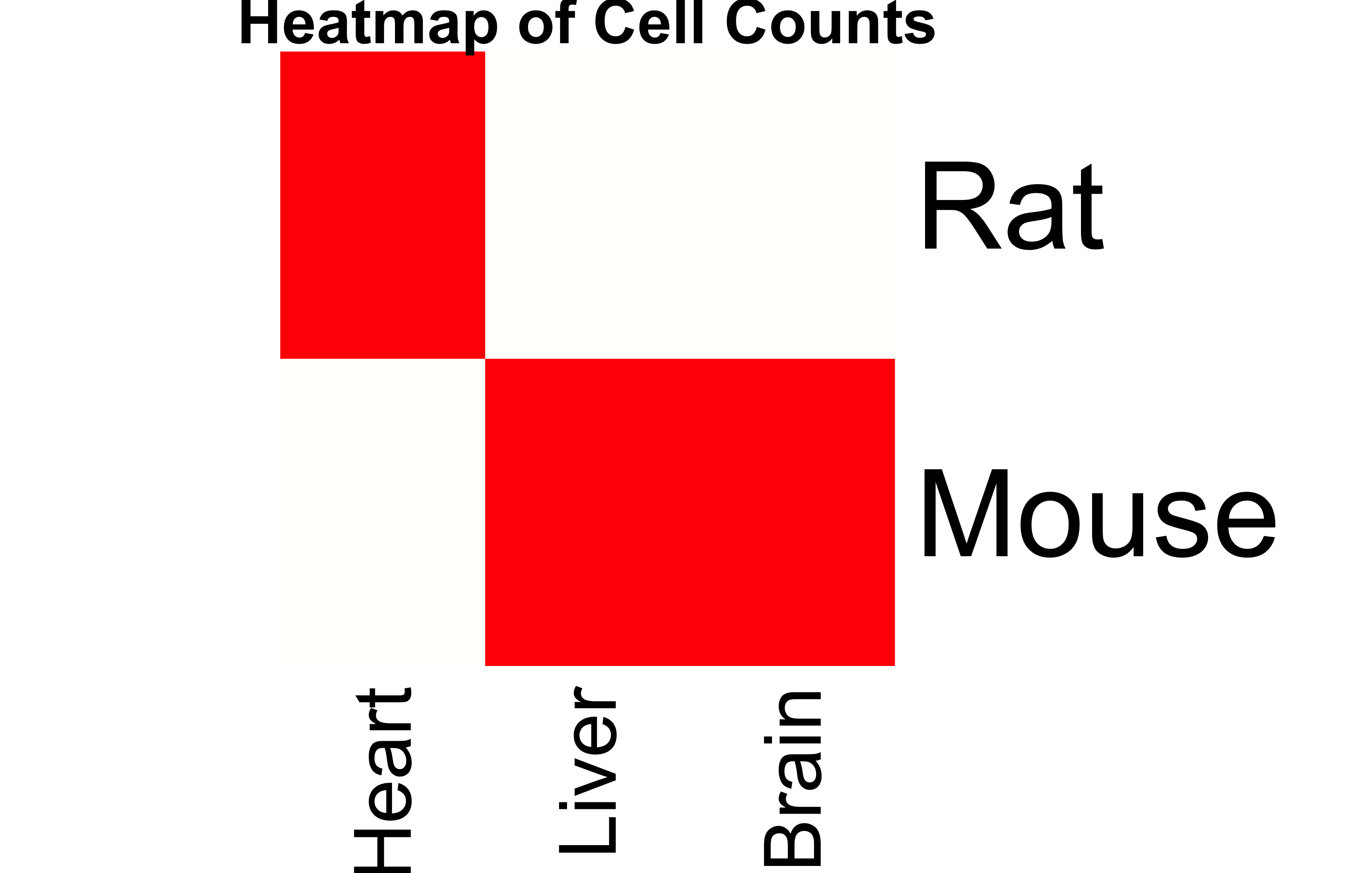 # Heatmap of the original Cell Counts matrixheatmap(Cell_Counts, Rowv=NA, Colv=NA, col=heat.colors(256), scale="column", main="Heatmap of Cell Counts")