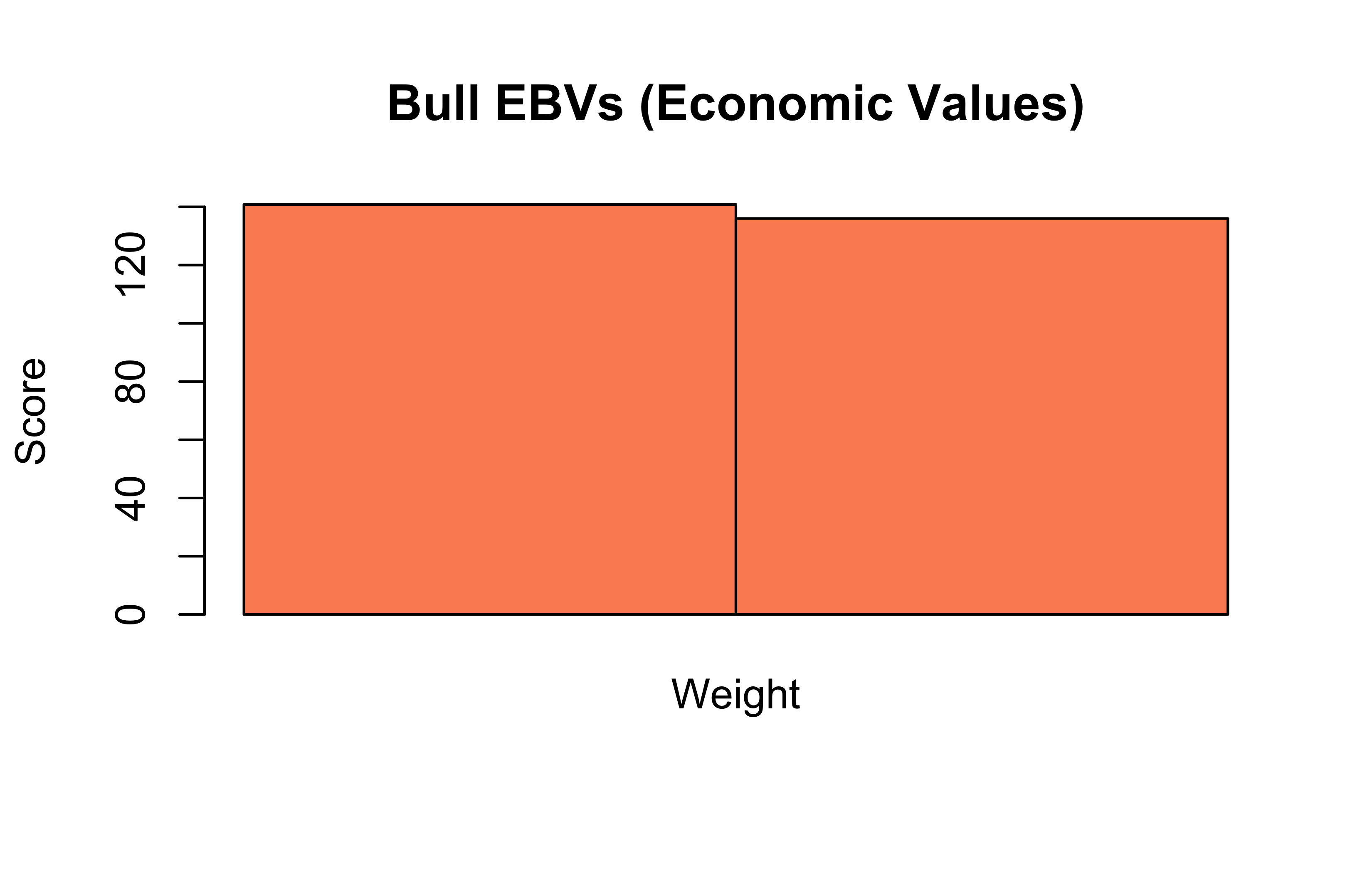 BullEBVs_noMilk<-BullEBVs[, -1]EconomicWeights_noMilk<-EconomicWeights[2:3, , drop =FALSE]TotalValue_noMilk<-BullEBVs_noMilk%*%EconomicWeights_noMilkcolnames(TotalValue_noMilk)<-c("New_Merit")TotalValue_noMilk